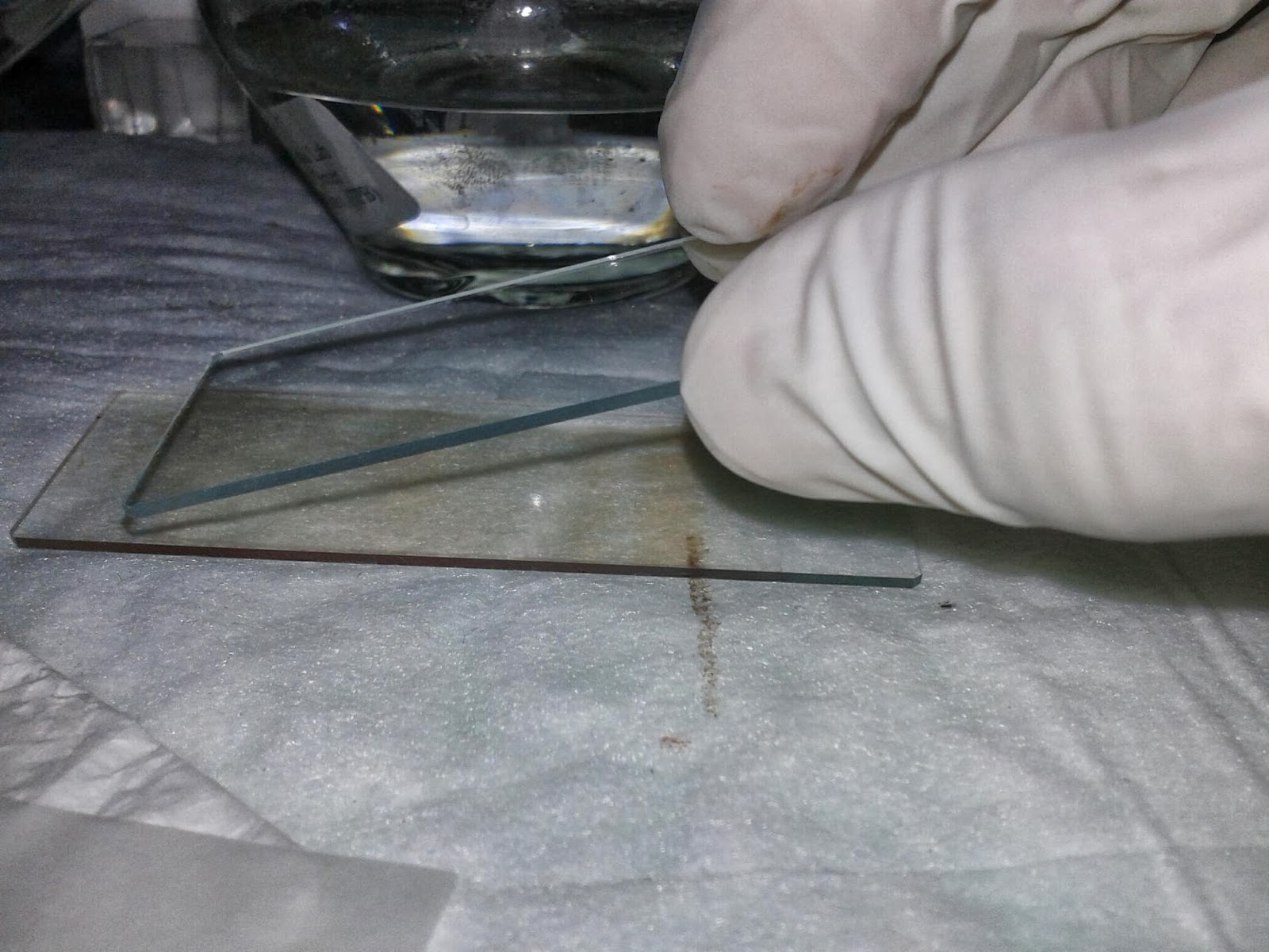 2. dengan glas yg lain tempelin miring (30 derajat) tunggu sampe darah "melipir" ke pinggir